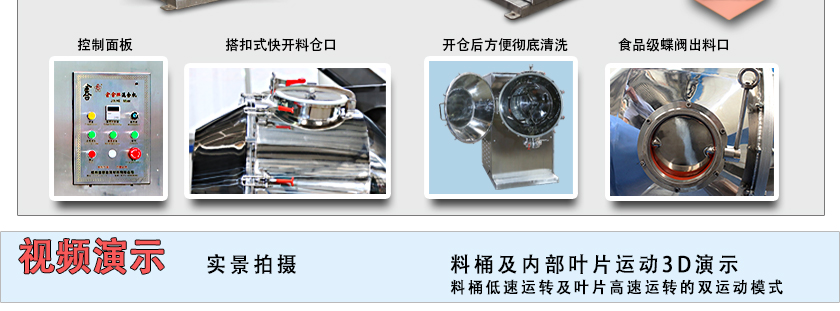 针对食品医药行业对设备内部清洗的严苛要求我们研制了具有全尺寸大开仓门独特优势的双运动®混合食品医